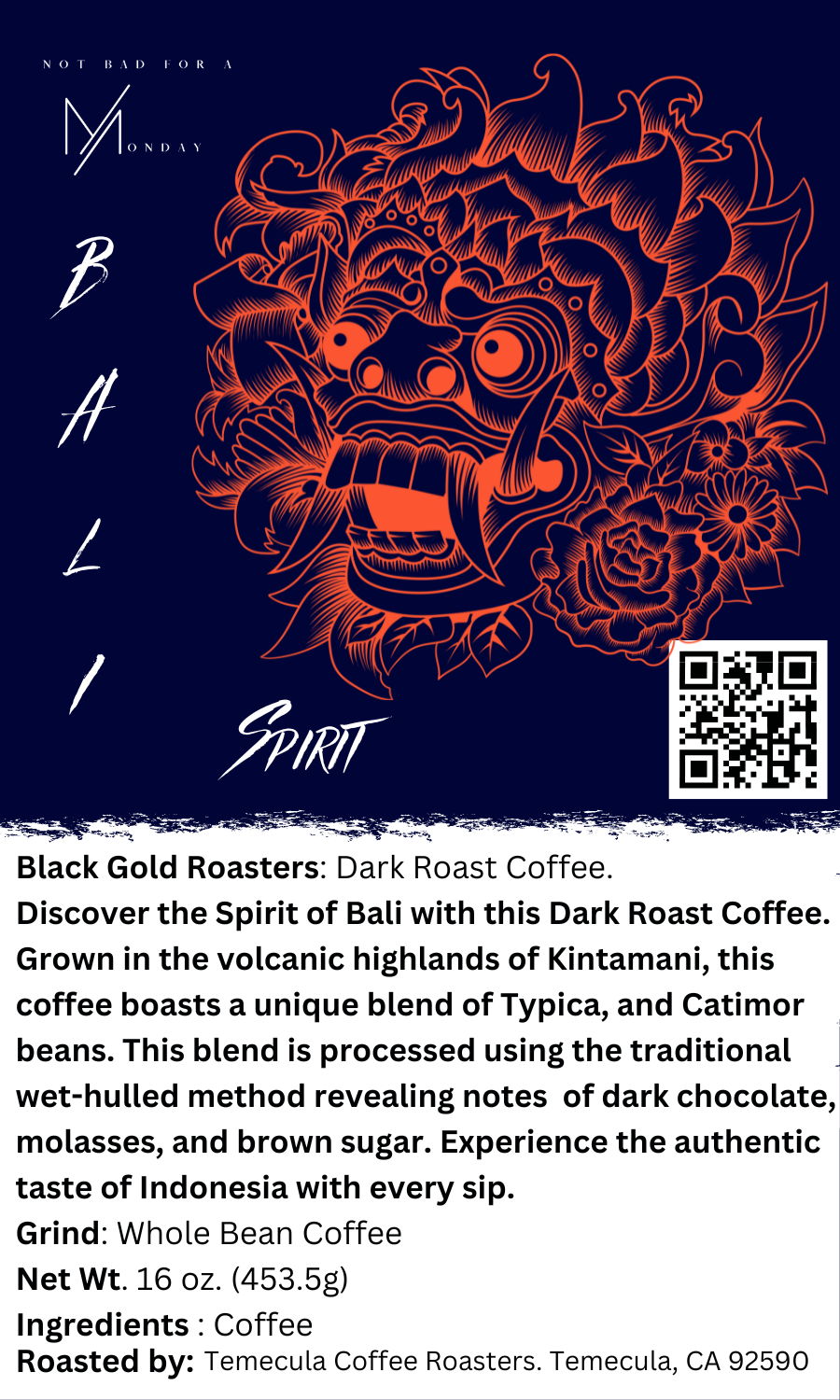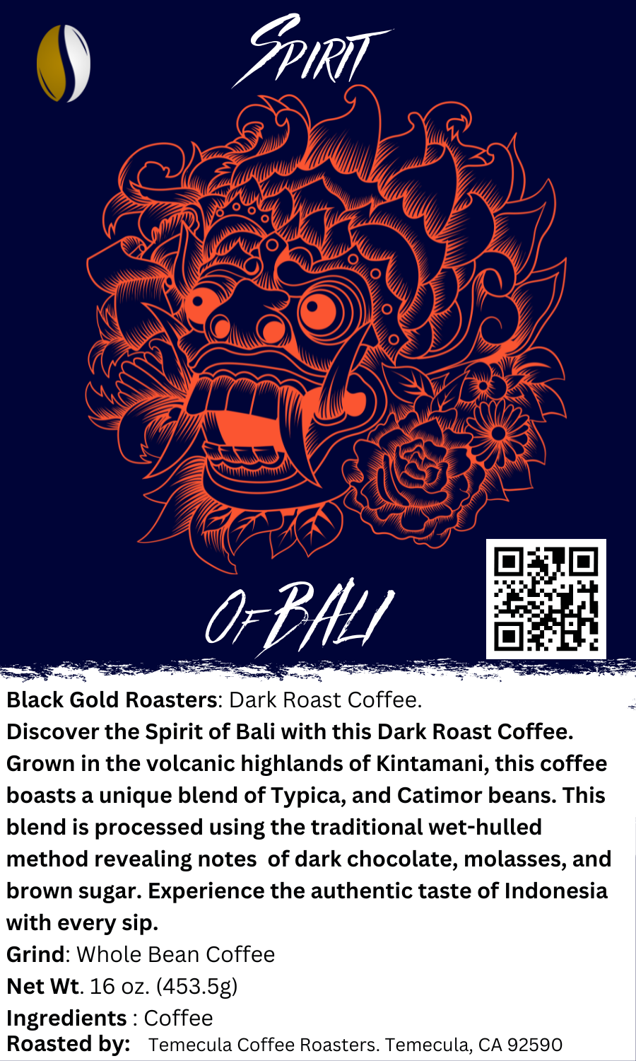 Immerse yourself in the rich flavors of Bali with our Organic Kintamani Dark Roast Coffee. Grown by smallholder farmers in the volcanic highlands of Kintamani, this coffee boasts a unique blend of Bourbon, Typica, and Catimor beans. Cultivated at altitudes of 1200-1600 meters in fertile volcanic loam soil, these beans are hand-picked and meticulously processed using the traditional wet-hulled method. Our medium-dark roast unlocks the coffee's full potential, revealing a decadent tasting profile of dark chocolate, molasses, and brown sugar. Experience the authentic taste of Indonesia with every sip.